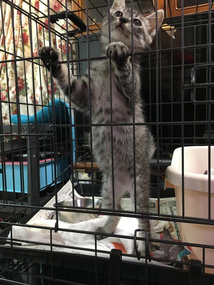 10日程安定した後、パルボなワケはない!と安心してようやくケージ生活になったミギーさん。