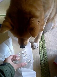 ガサゴソ包みを開けていたらムクが鼻っつらをずぼ。