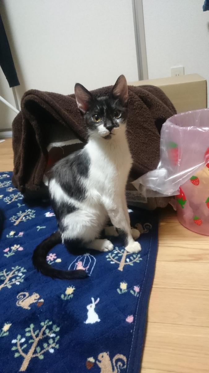ずっと鋭い目付きをして、鳴き声もほとんどあげずにジーっと座ってるだけでしたが、我が家に来て1ヶ月ちょっとで激変!!