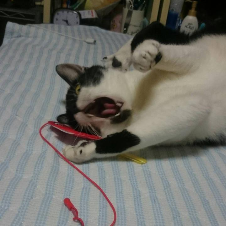 暇さえあれば大声で鳴いて、走り回るしオモチャで遊んで暴れるし(笑)
