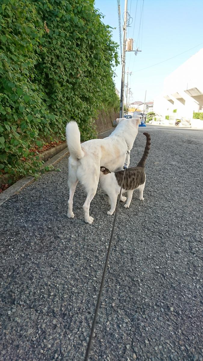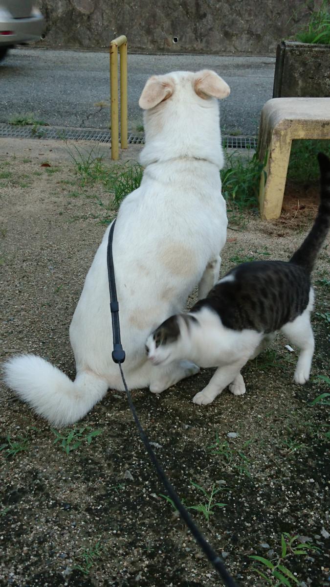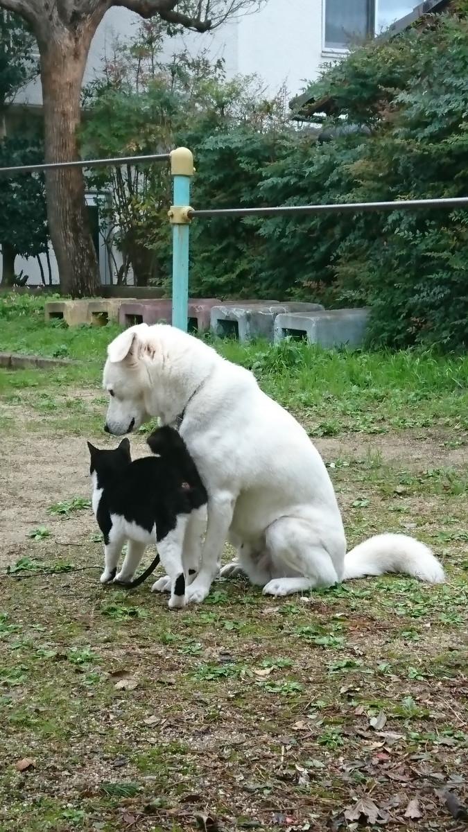 お庭にどの猫さんや犬さんが遊びに来ても、決して怒ったり追いかけたりしません。