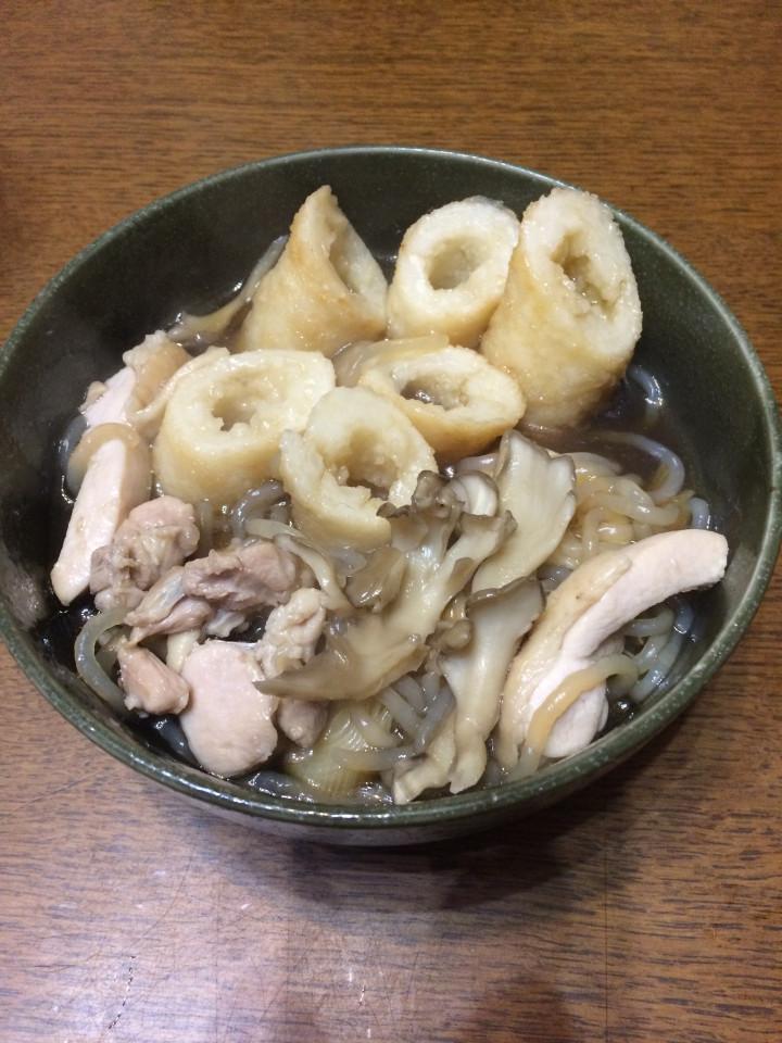 糸コン、まいたけ、鶏肉、ねぎ、きりたんぽです。