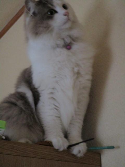 人の頭を踏み台にして、隣の食器棚に飛び乗りました(-_-;)