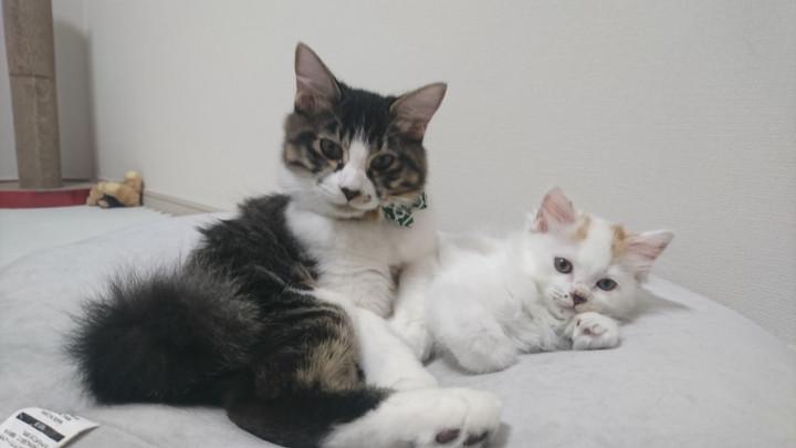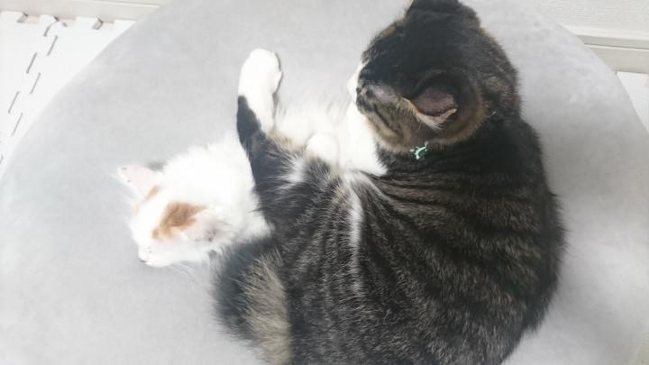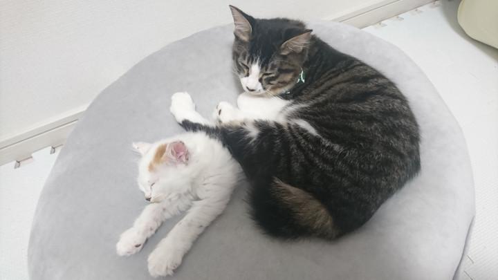 雪之丞の体に足を乗せて寝てる竹虎(=_=)