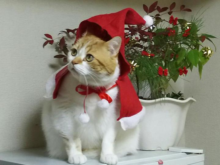 サンタというより太めの赤ずきんちゃんでしょうか😅人間なら太めで毛深くマイペース、でも優しくて心の広いオトコです🎵