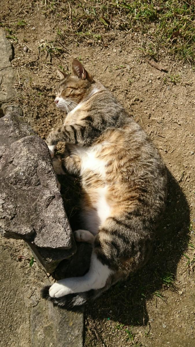 猫3号はいつも午前中、お庭で日向ぼっこしながらお昼寝です。
