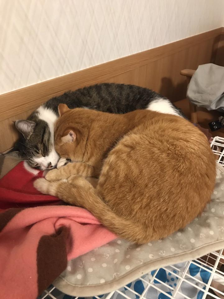 里帰りしてから、レオとトラはいつもくっついて寝てるよと。