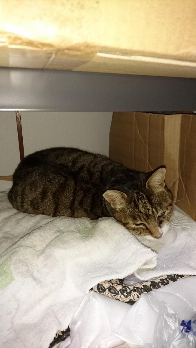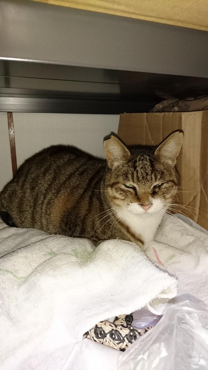 モフモフふれあいタイムが終ると外には出ず、お部屋の棚にある段ボールの上に行きます。