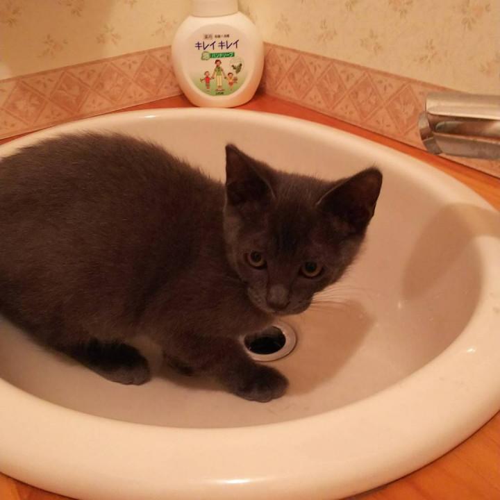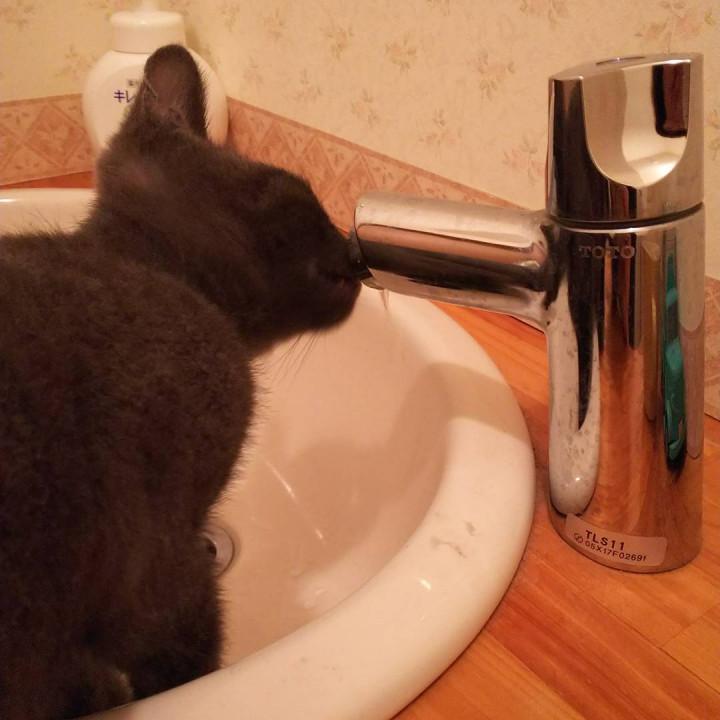 トイレの洗面所のお水も好きみたいで、出してやるとペロペロ飲んでます❗️