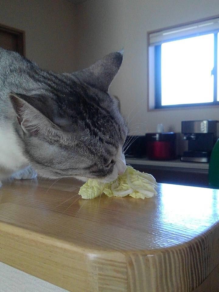 白菜の美味しい季節です!ベジタリアンなアリスは、人間の食べ物で唯一ほしがるのが、葉物野菜です🥦