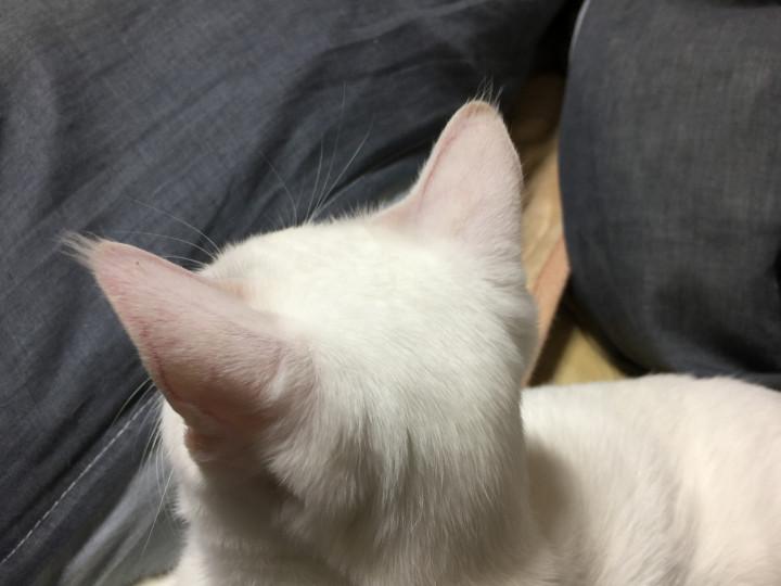日光皮膚炎で真っ赤になっていた雪の耳も、ガラスに紫外線99%カットのフィルム貼ったのが良かったのかな、いつの間にか真っ白に戻ってました(^^)良かった。