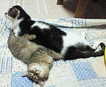 すっかり先住猫「ゴンちゃん」と仲良しです。