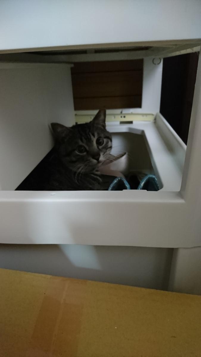家に来た日に、タンスの引き出しに籠っていたね〜。