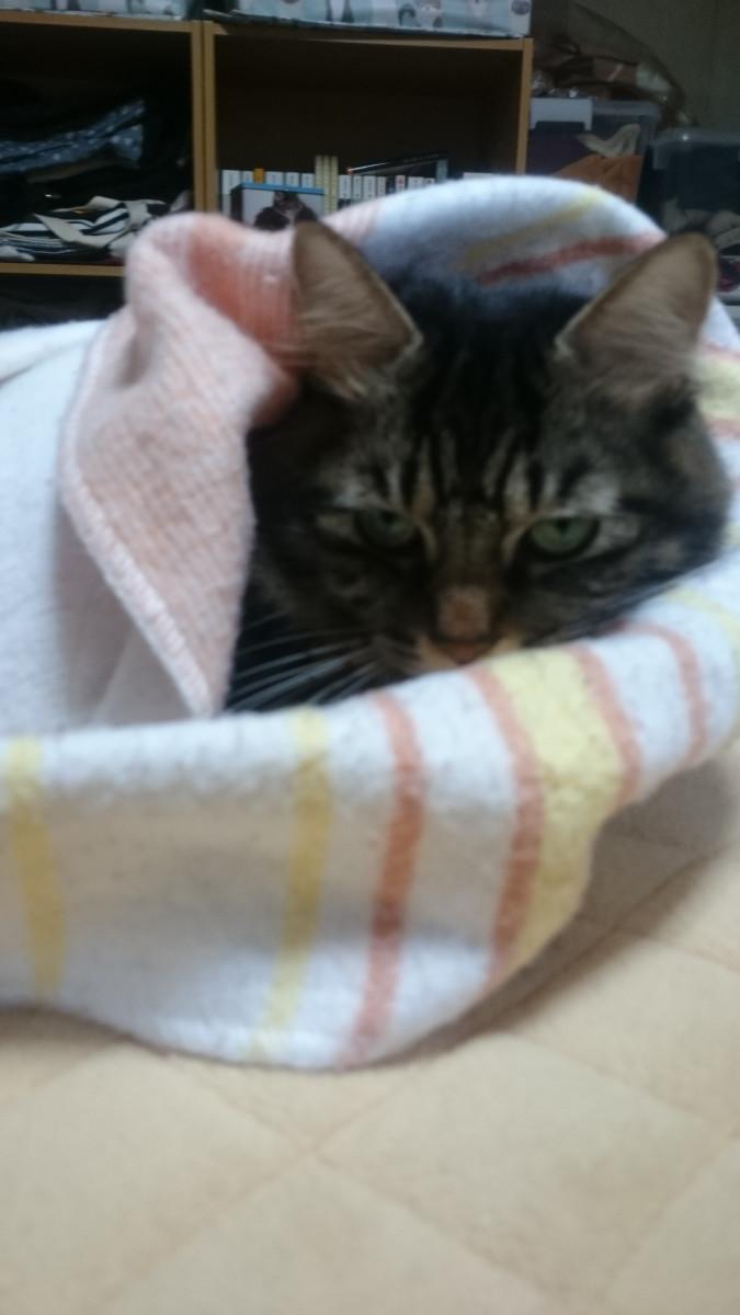 布団を上げる時に敷き毛布をしまおうとしたら走って来て毛布の上に座り込んだり潜り込むようになりました( ̄▽ ̄;)