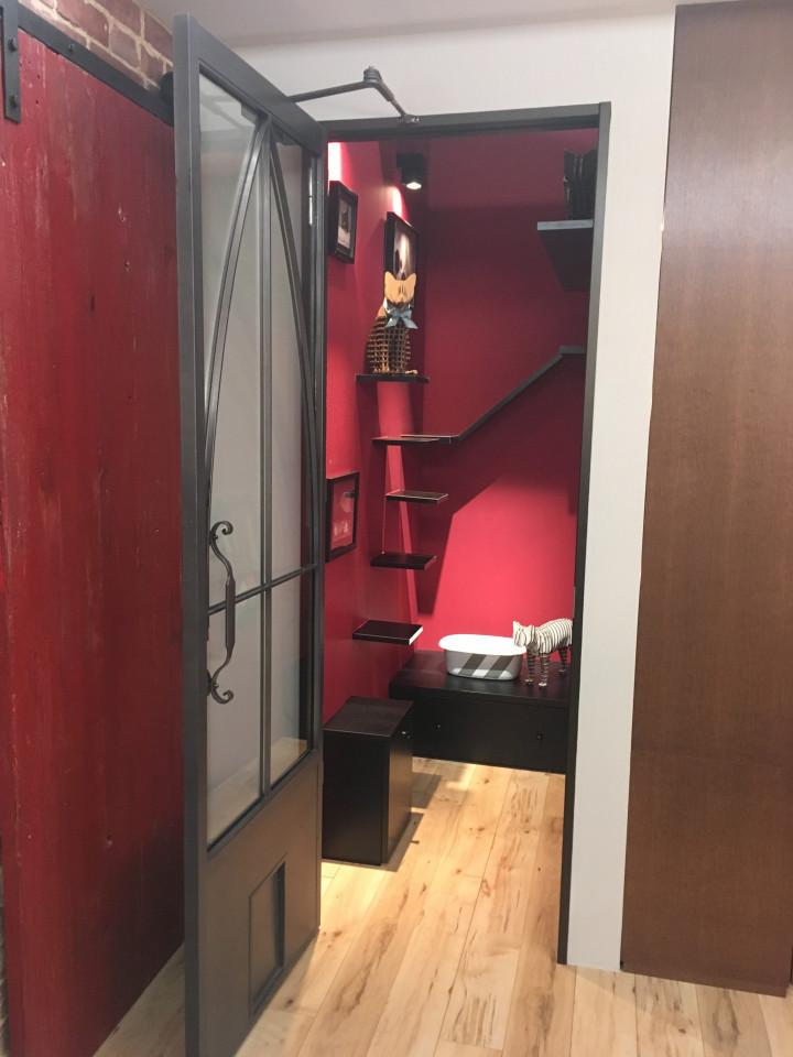 なんとこのねこトイレ、リビング側からウォークスルーでありつつもガラス扉を閉めればケージ的な利用もできる優れもの…!!!