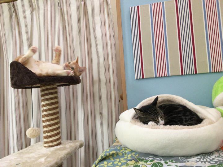 帰ったら、家族と留守番してたねこたちはこんな感じ。