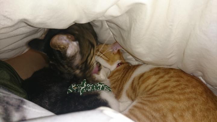 猫もいつも通り、お布団入れてくだせぇ!と布団をカキカキ