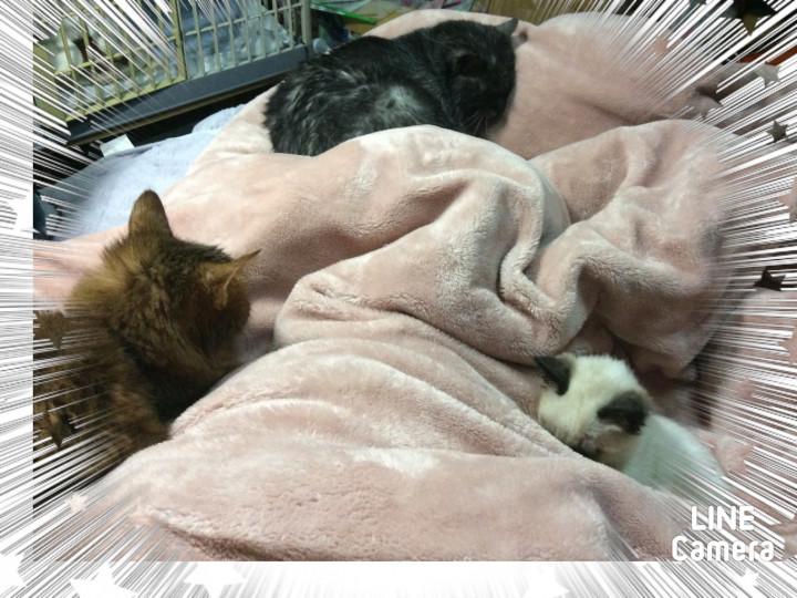 真菌発覚まで 、3匹は私の布団の電気毛布の上に居ましたが