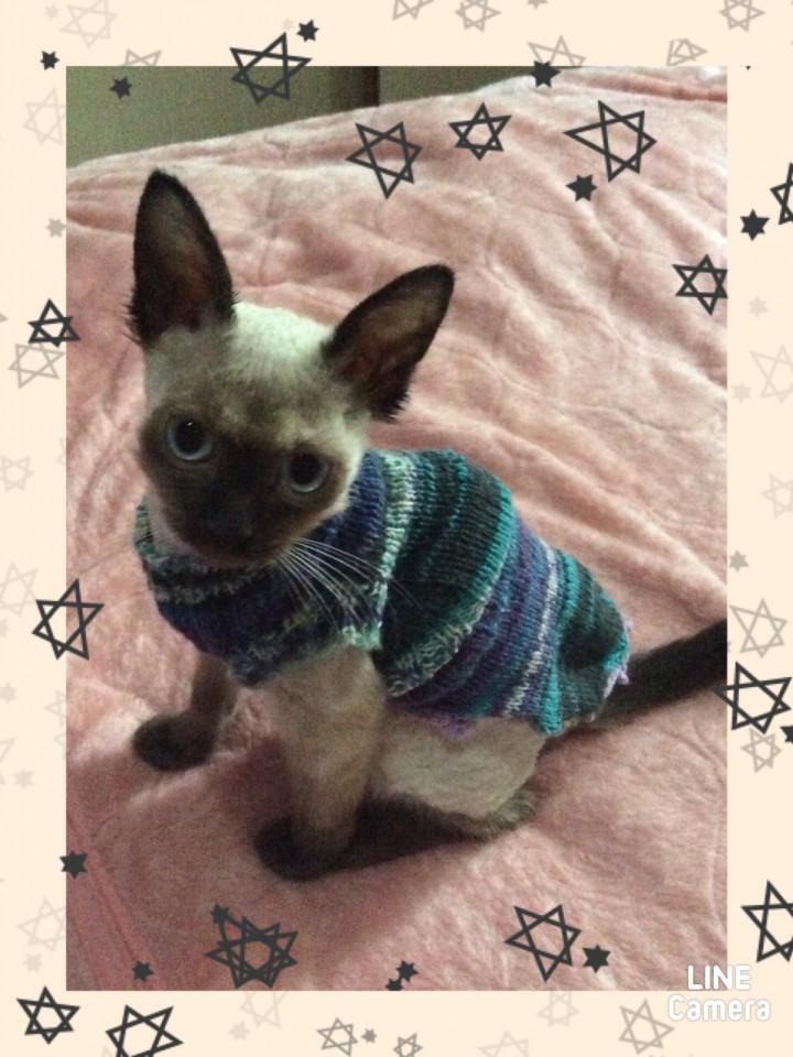 お薬塗る為に、毛刈りしたので 、寒い無いように