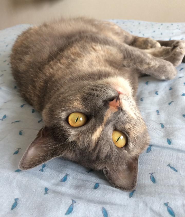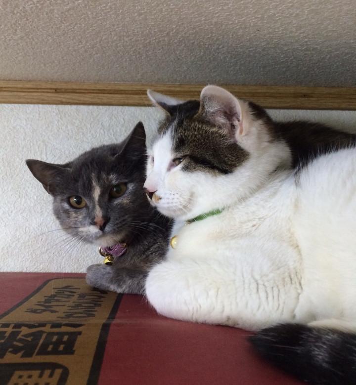 あまり鳴かないけど声が高くて『アーン』って言いながら膝に乗って来たり、カナを撫でてると、私も撫でて〜と、そぉっと近づいてきて、猫が増えるたびにシャビもアピールを頑張って甘えてくるようになりました♪