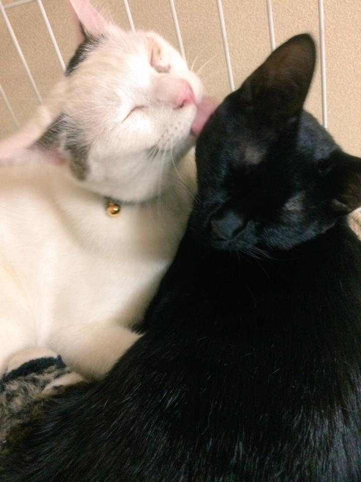 心配していたモナともすごく仲良く、暑い時から猫団子にw