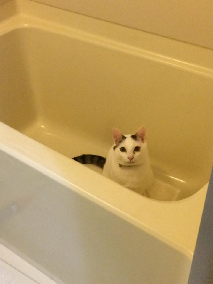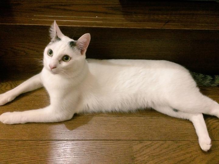 食いしん坊でご飯の時間になるとにゃうにゃう足にまとわりついてきます。