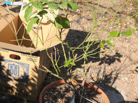 持参した鉢植えの薔薇、何処をどう切っていいのか全く分からないし~