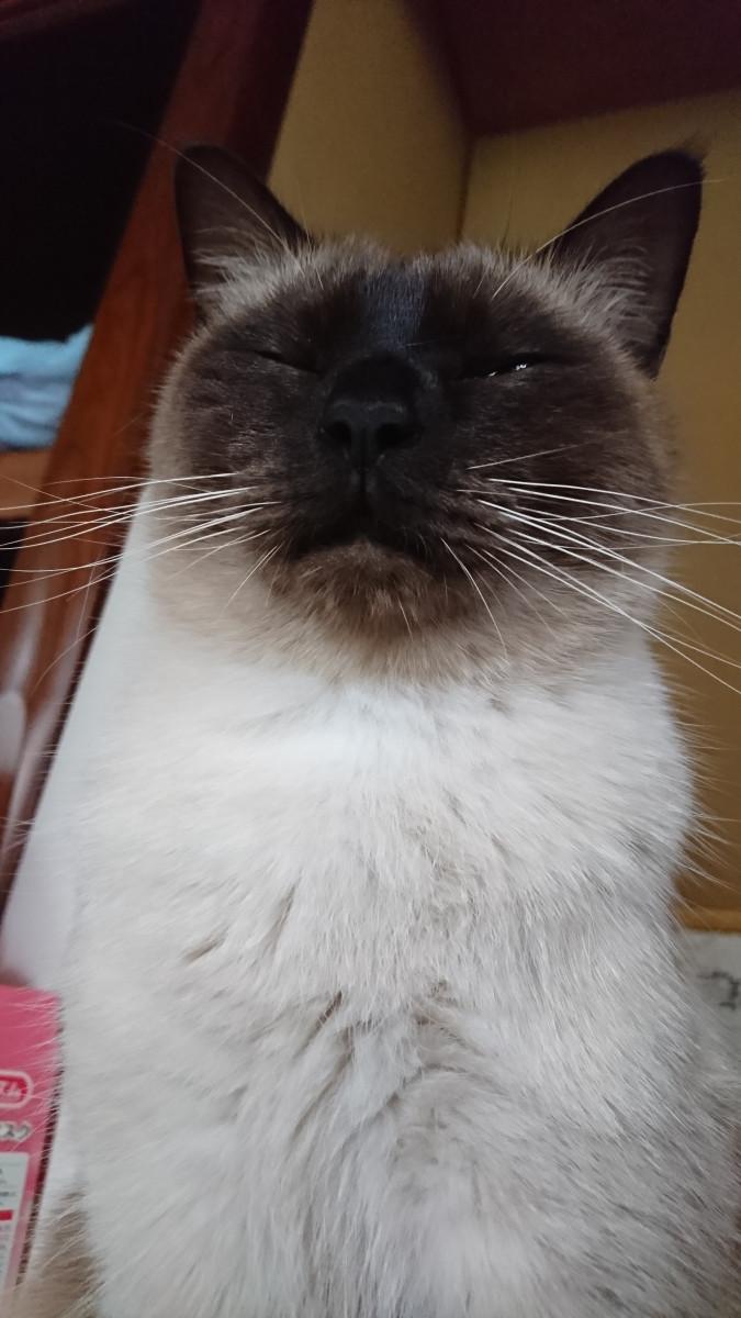 大福が朝ごはん待ちのポーズ。