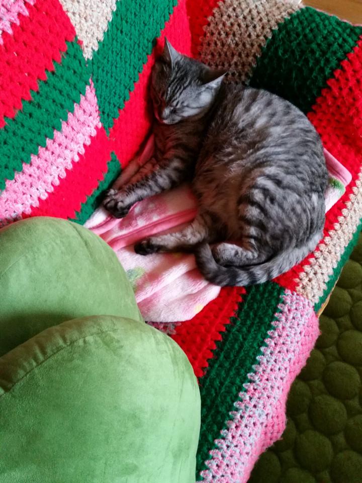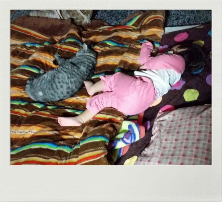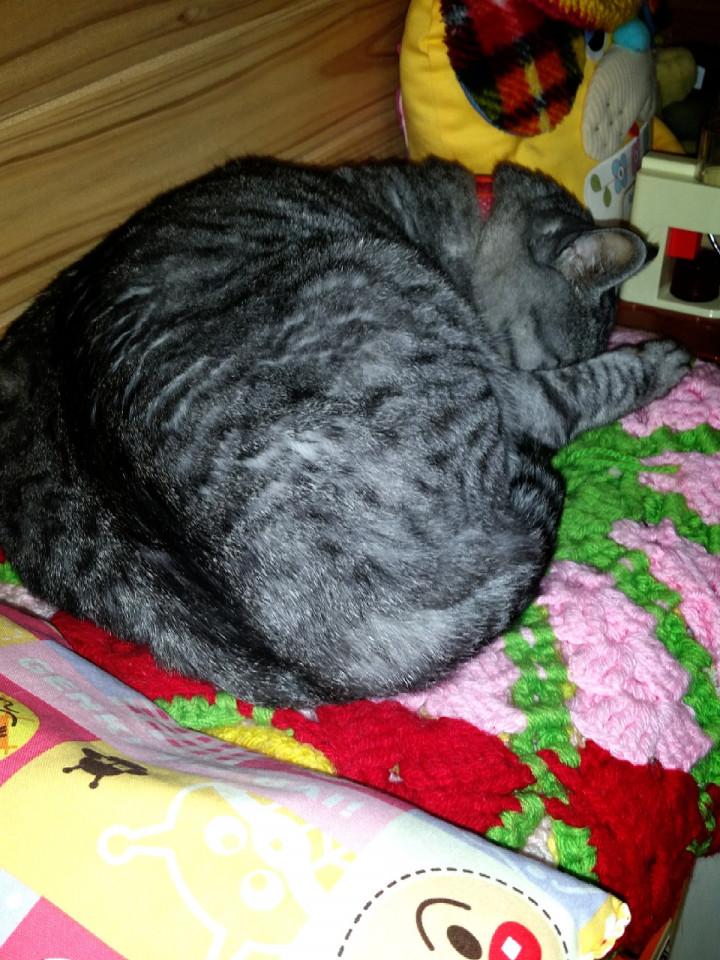 一緒の姿で寝る金ちゃん