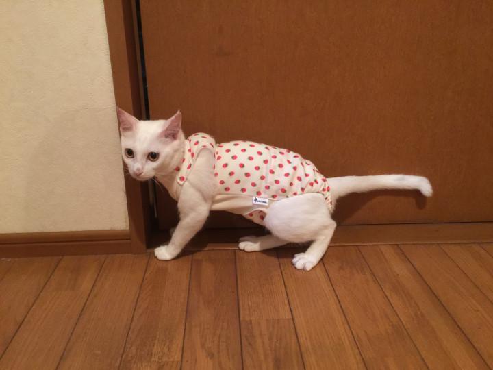 こむぎの術後服は、雪の避妊手術の後に着たサイズは合わず、買い直ししました。