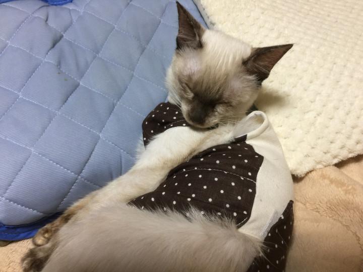 仕事があるので朝、病院に連れて行くのは無理だった為、昨日の夕方から病院でお泊り、夕べは全然寝られなかったのかな、帰ってきたら雪や海苔と少し遊び、ご飯も食べた後は、ぐっすりです(^^)