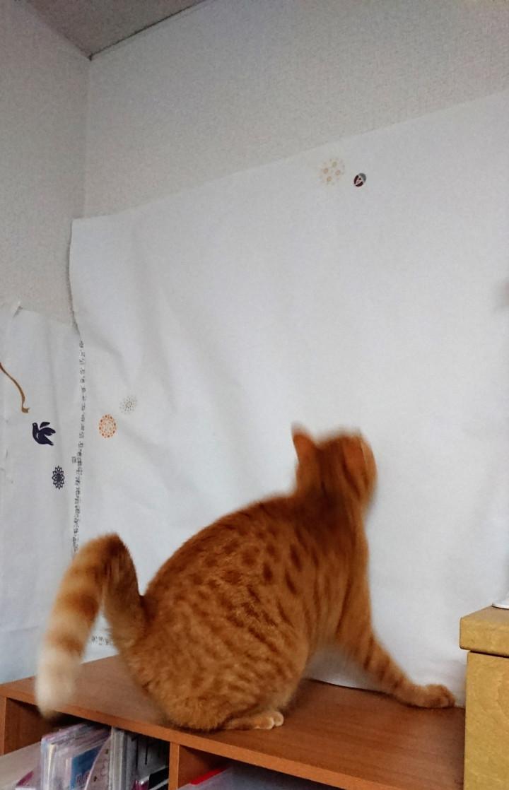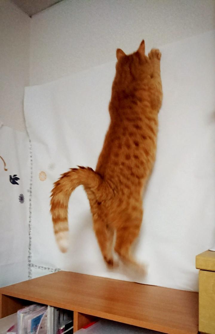 冷蔵庫、壁、そしてこの、家具の上でも飛ぶ飛ぶ~。