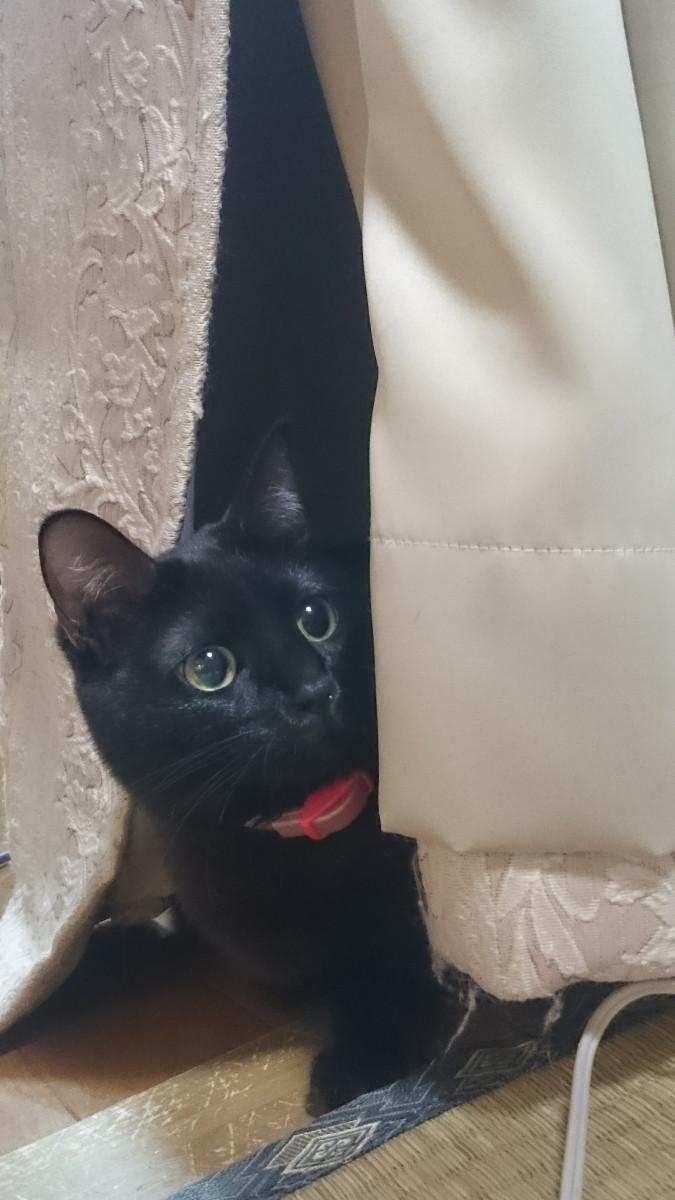 そして、カーテンに隠れて〜・・・あれ?ショコラちゃん、どこいったの???