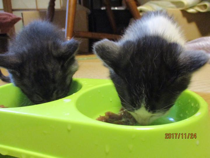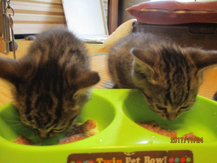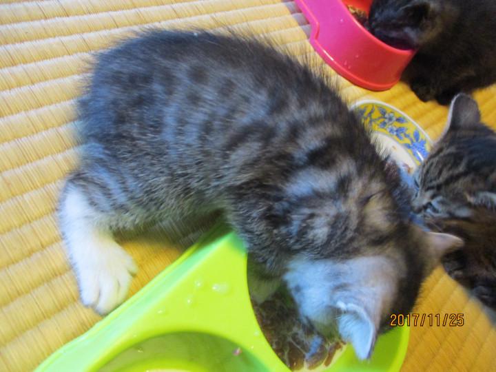突進して来て、勢い余ってお皿を飛び越えちゃうキトゥンズ( ;∀;)