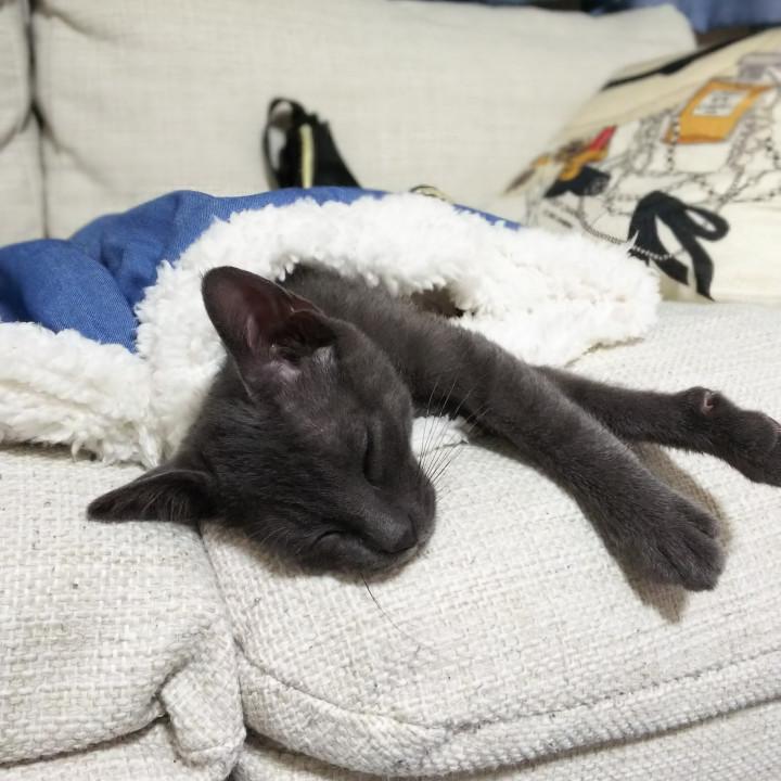ココで出会ったロシアンブルー風のグレーカラーのジル君♂とネコLIFEを楽しんでいます! 事務所と住居で常に一緒です。 R6年4月〜ミヌエットのプッチが仲間入りしました〜!