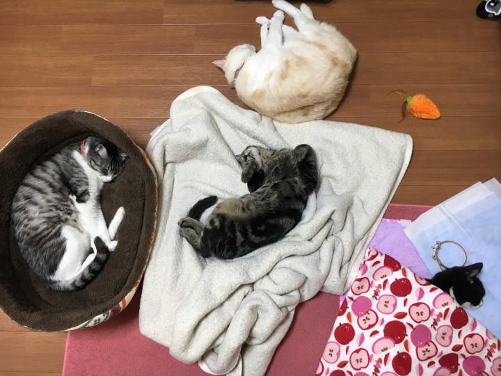 旅立った後 普段寄り集まることのない4匹が一緒に寝ていたね