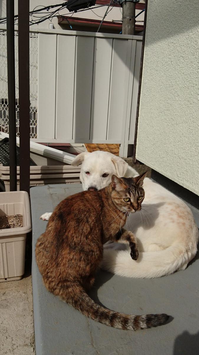 メイちゃんとリンちゃんがお外に出ているのを見て、ハウス内にいたコロタ君も出て来て…