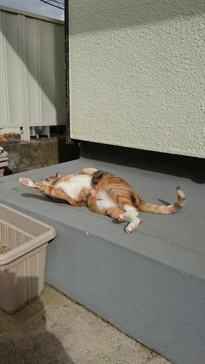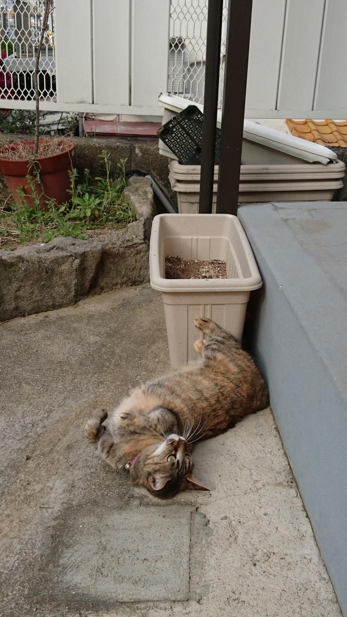 地域猫1,2,3,8号のお食事が終わり、コロタ君のお散歩が終わってから出してあげます。