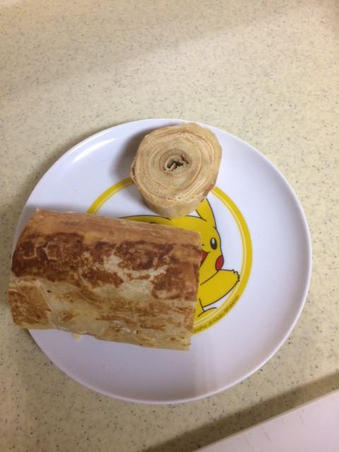 ホットケーキの粉をアレンジして、フライパンでまきまきしてました。