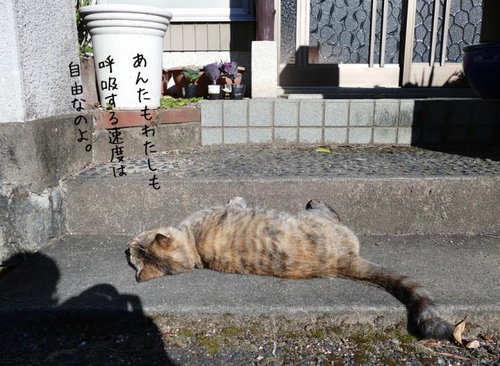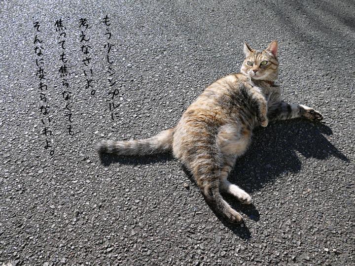 けれどもすぐに、塀から飛び降りしっぽを立て、