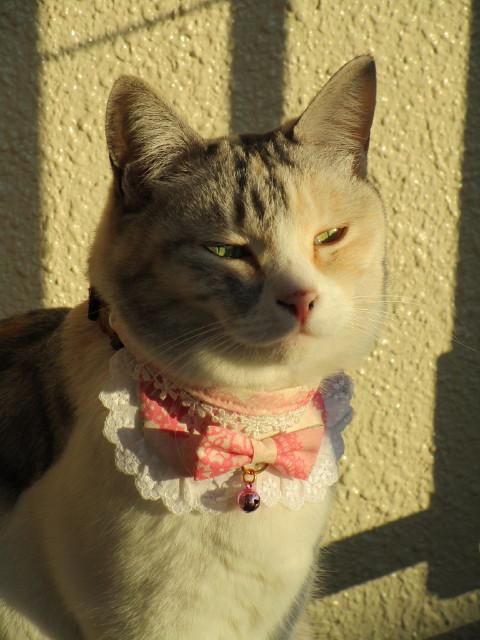 本猫がそんな事を考えてるかは分からないけど、オシャレさせてみました♪