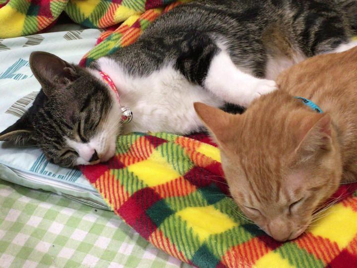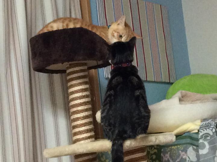 子猫は「子猫時代を一緒に過ごした子を仲間認定しやすい」のだそうで。それも、後から年下の子が来るとお兄さん的になりますよとアドバイスをちょうだいしました。