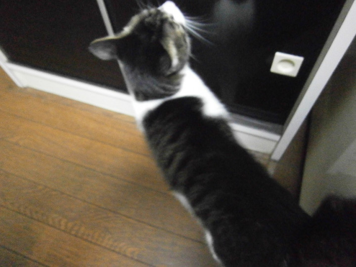 いつもの「ちゅ~る食うか?」の一言を合図に一足先に仕舞ってある扉の前に・・・^^;