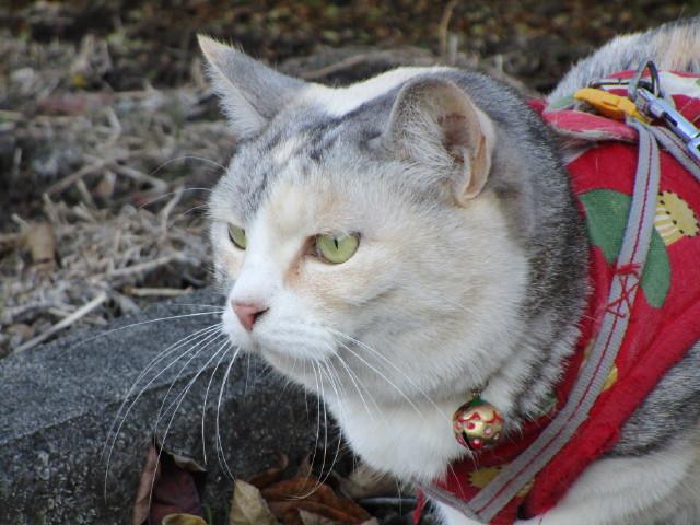 おヒゲは前向き、ウィスカーパッド(ひげぶくろ)もプックリと緊張気味。