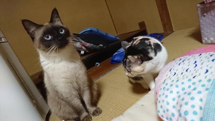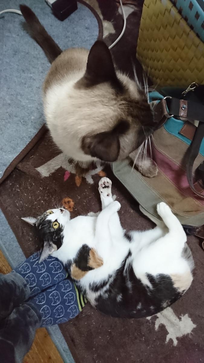 新居と行ったり来たりするにょろかーちゃんを行かせない攻撃をするにゃんず。。