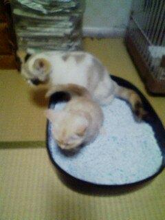 確かこの写真は、朝のトイレ掃除をした直後に2匹で駆け込んできたとき(^^)