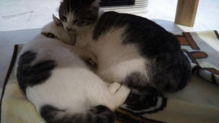 先住猫ちゃんのことが大好きみたいで、べったりです!