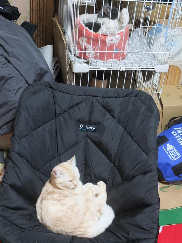 ベッドを使われたふぅは、チーの椅子で爆睡~♪