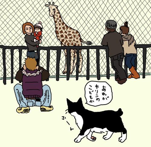 動物園で猫を見るのは初めてだから、いったい何しに来たのだろうと思うし、なにより、さっき道で顔を合わせたときに、猫も私たちも動物園に行く途中だったという偶然が、何となく可笑しい気がする。