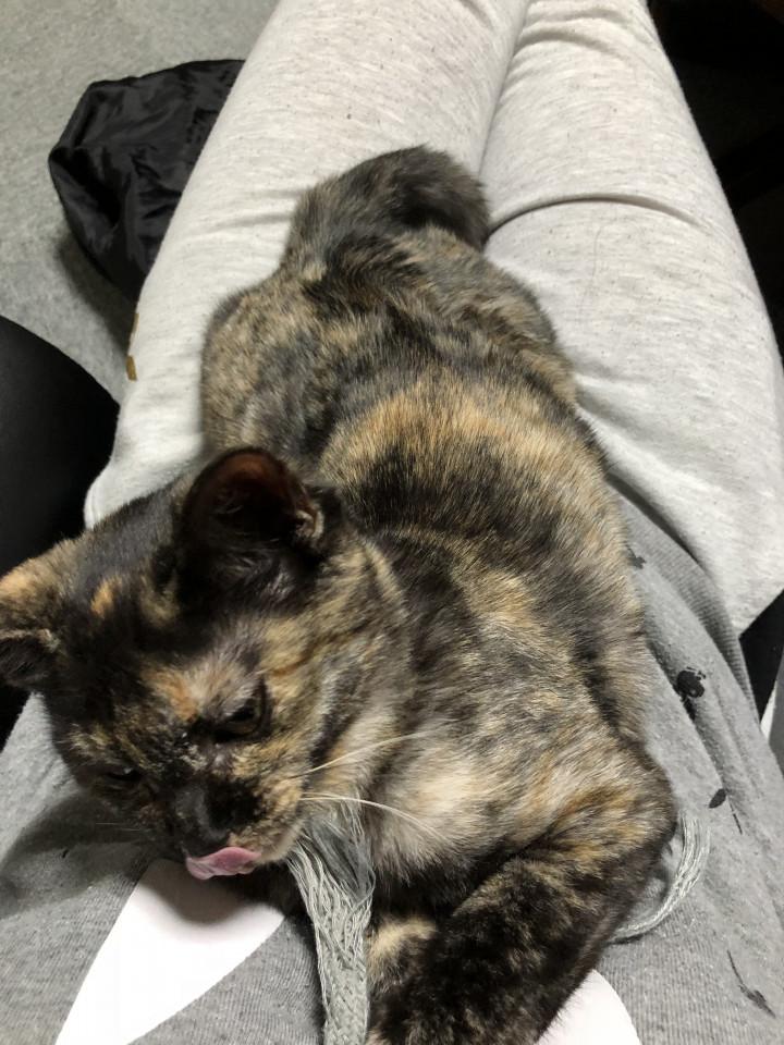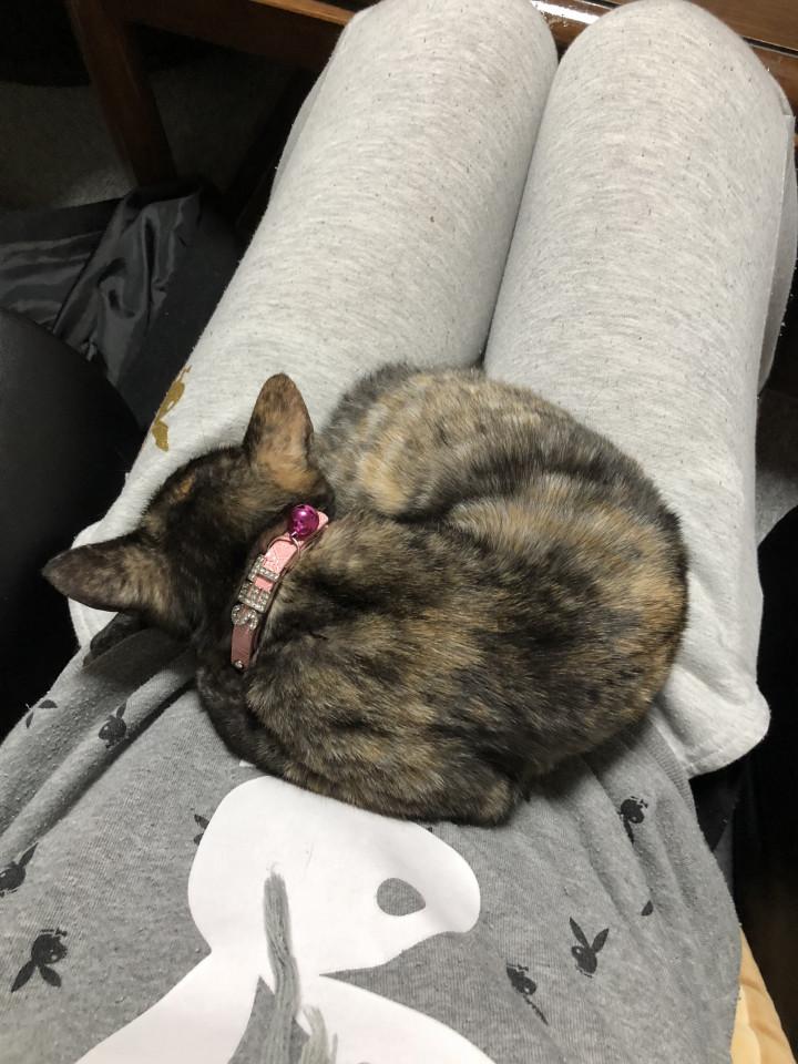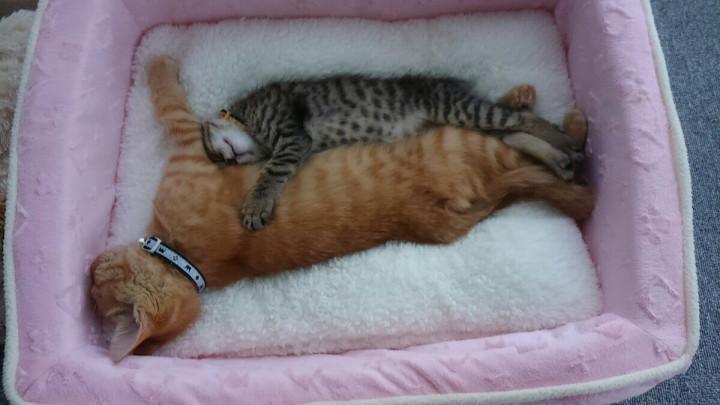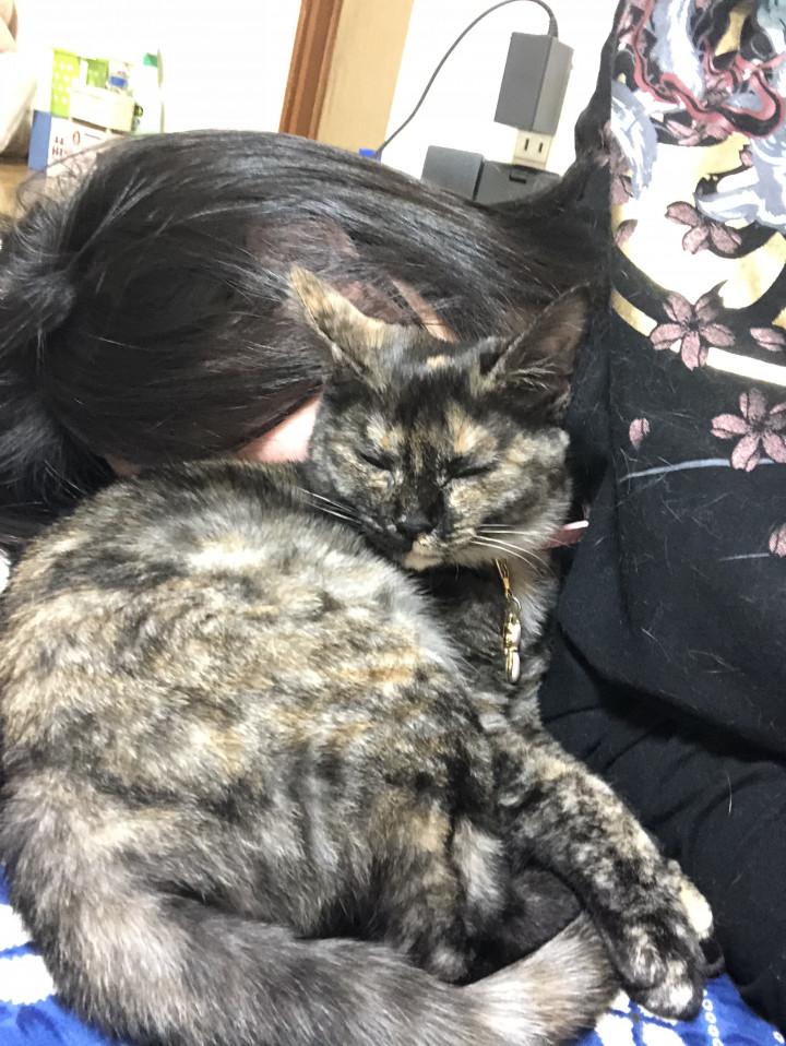 私の昼寝中一緒に寝るってくっついてきて